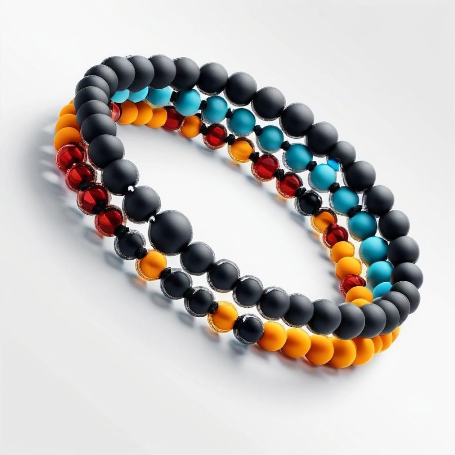 利用不同颜色的圆形串珠,结合清晰的线条,创造出具有视觉冲击力的设计。通过减少串珠种类,突出颜色的纯度和搭配,形成简洁明快的视觉效果。可以考虑使用透明或哑光材质,增加质感的对比。
